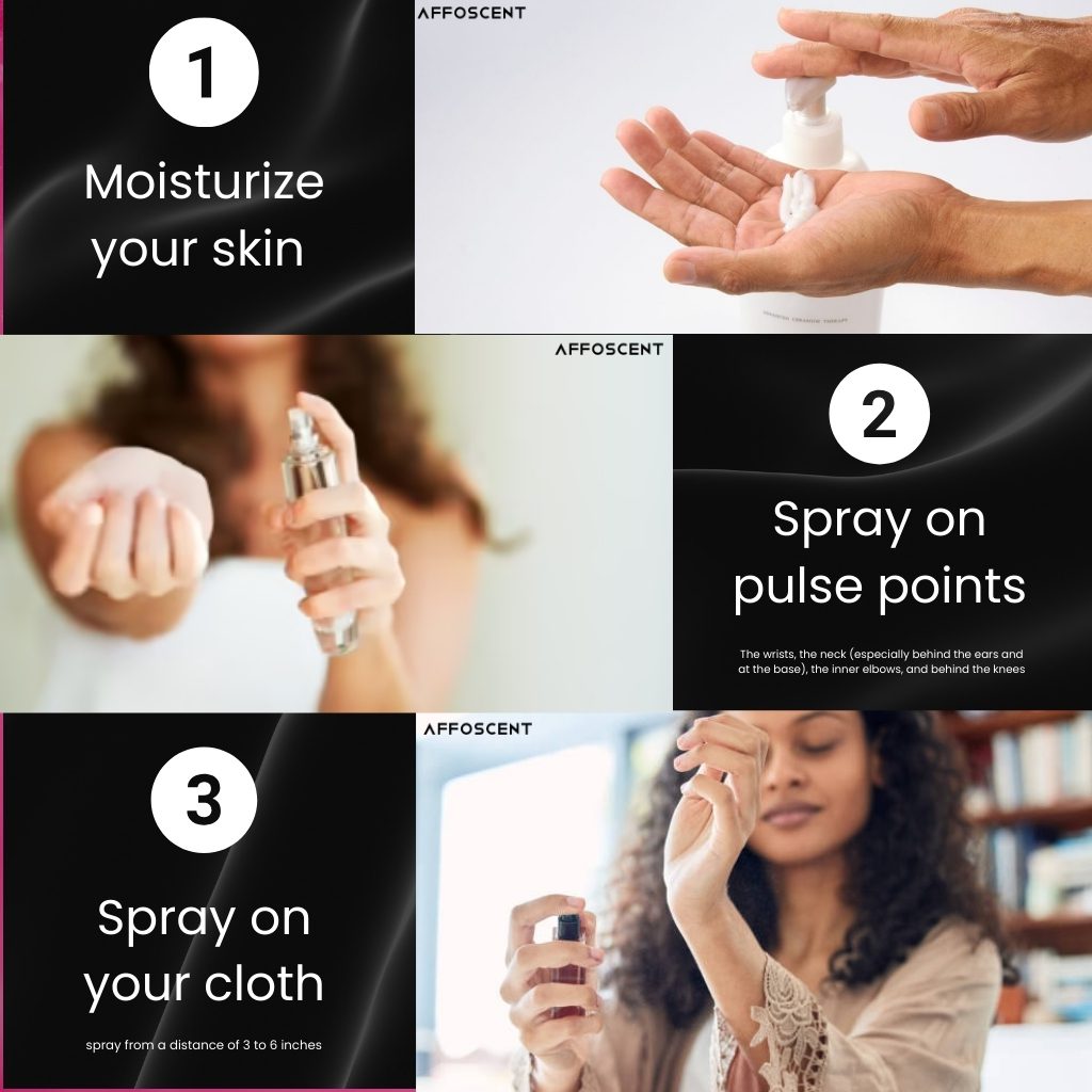 Tip: Apply perfume to clean, moisturized skin right after a shower for best absorption and longevity.