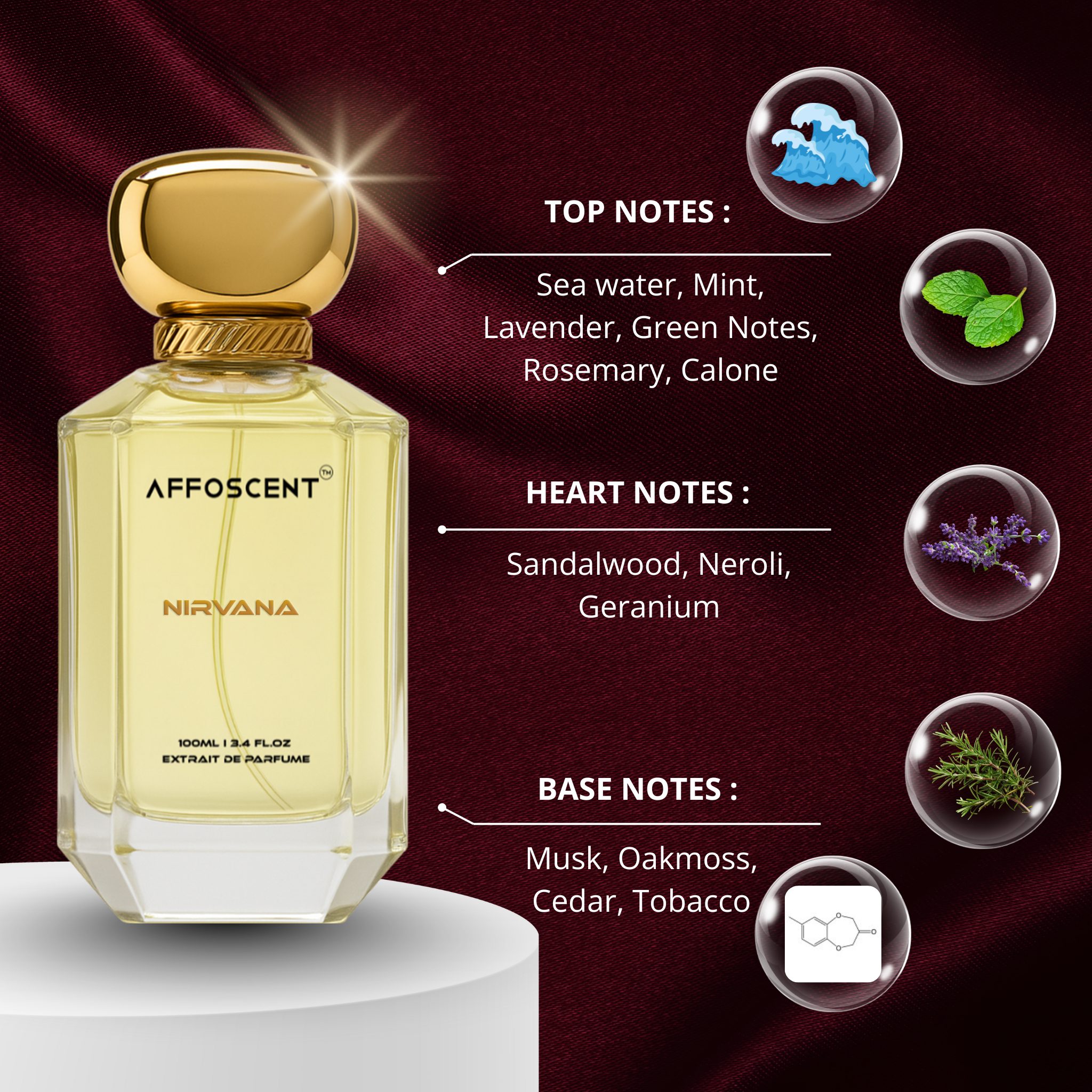 Top Note: Sea water, Mint, Lavender, Green Notes, Rosemary, Calone