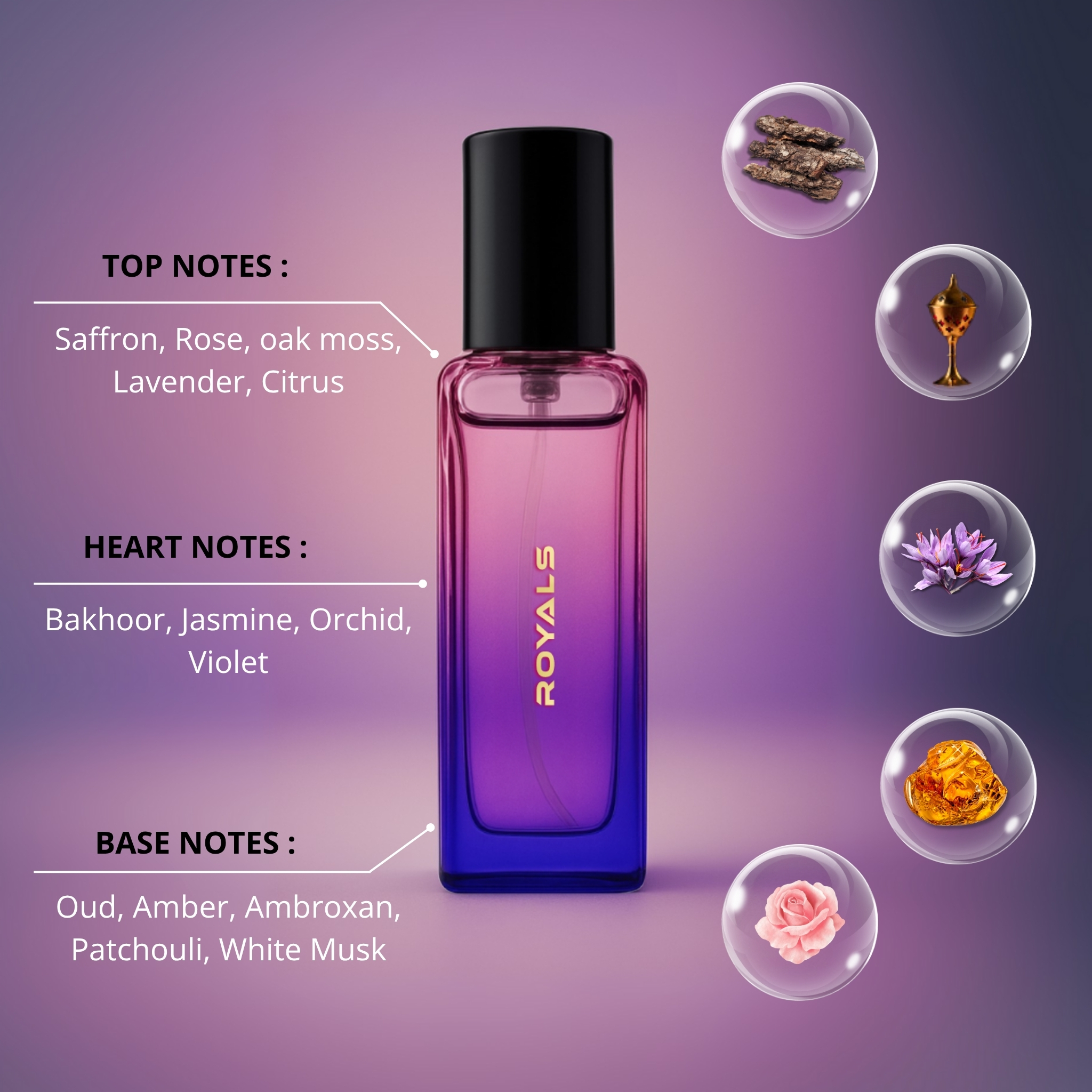 Oud is celebrated as one of the rarest and most precious ingredients in perfumery, and Royals brings it to life with a refined modern twist. Its amber warmth blends with deep oud woodiness, balanced by musky sweetness and a touch of spice. Perfect for both men and women who appreciate luxury oud perfumes in India.